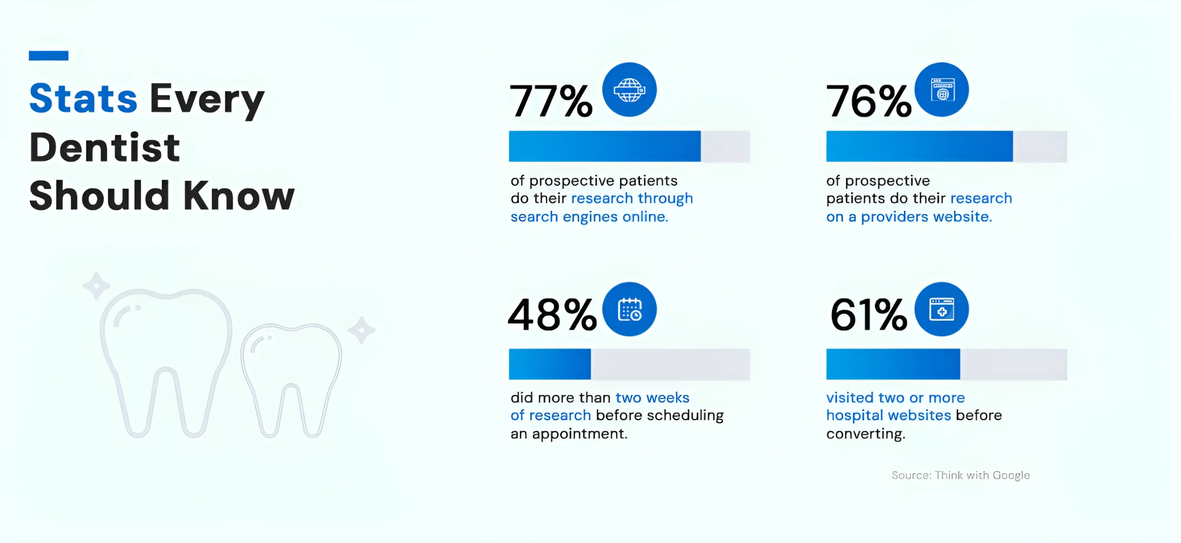 - Dental clinics with a solid online presence achieve over 90% more views than those without